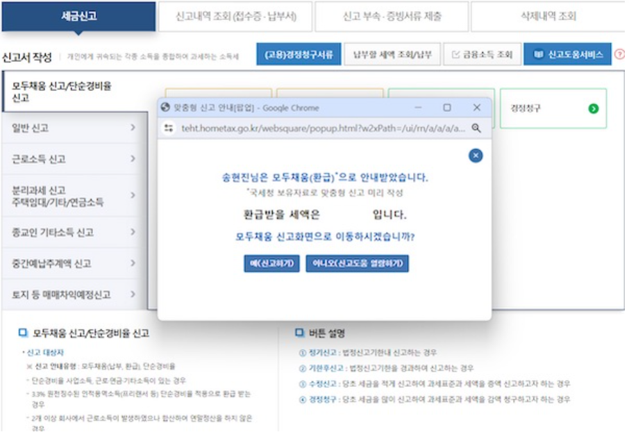 모두채움 신고서는 국세청이 자동으로 채워준 자료로 간편 신고 가능 (일부 대상자만 제공됨)