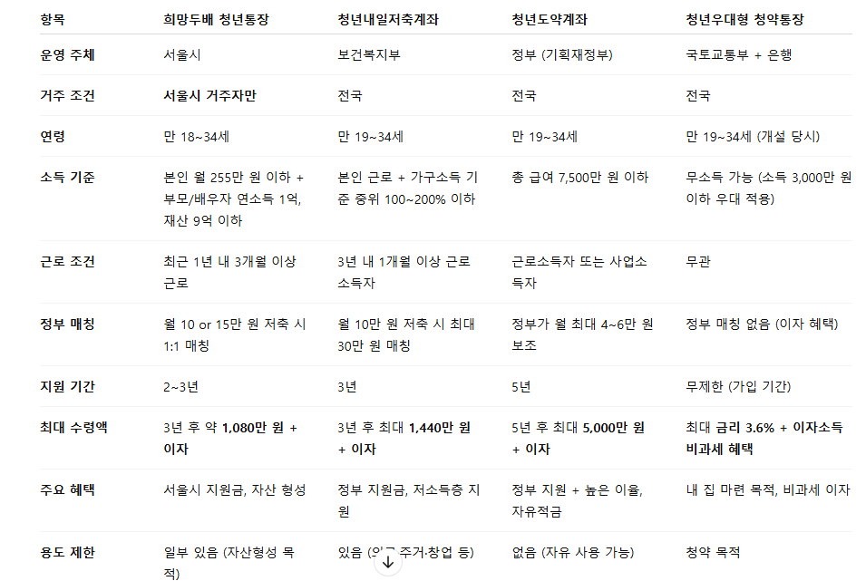 ✅ 청년 금융 통장 4종 비교표