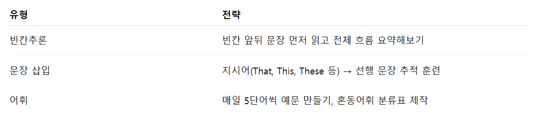 - 빈칸추론과 문장삽입 등 고난도 유형도 지문이 짧고 핵심 힌트가 명확.