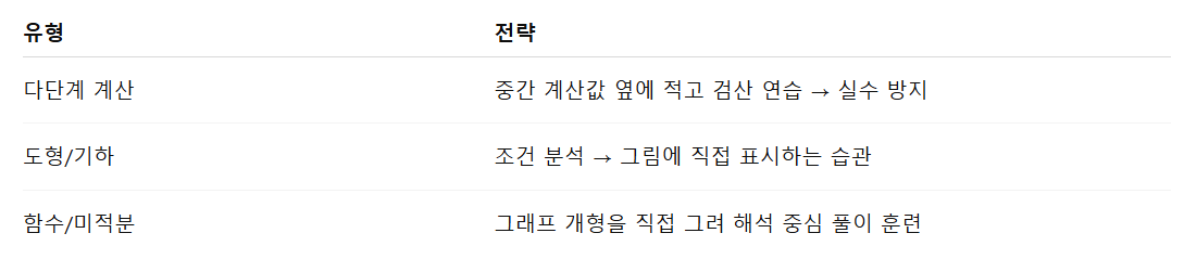 - 미적분: 개념 적용+미분 계산 병행하는 고난도 문항 출제. 수치 계산력도 요구됨.
