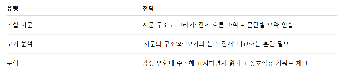 - 비문학 복합 개념 지문에서 정보 간 연결 미흡