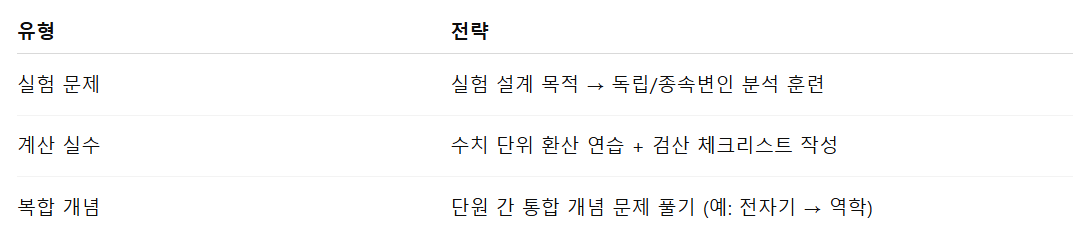 - 복합 개념(열+전자기 등) 연결 문제 풀이 실패