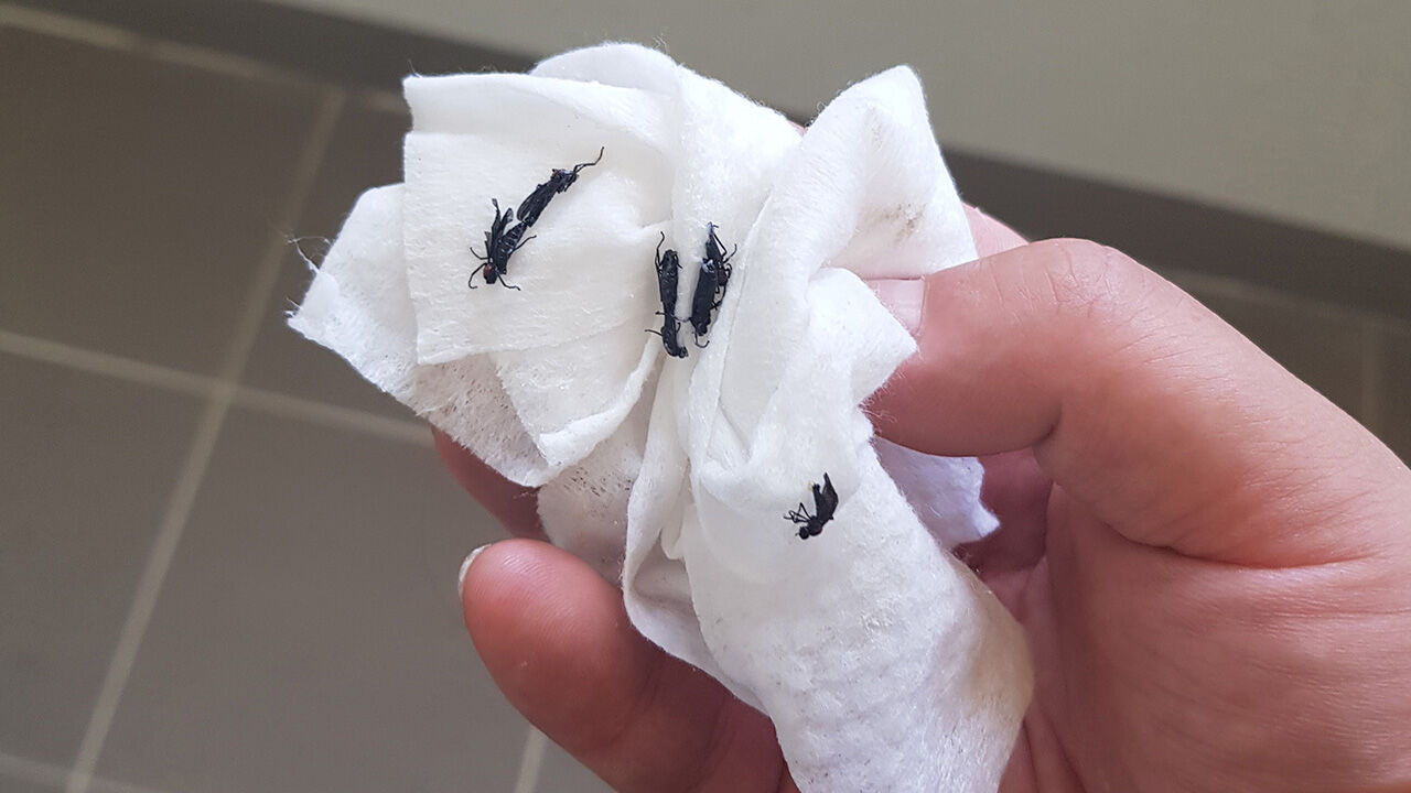 "음식을 하려고 주방에 갔는데 싱크대 근처에 러브버그 떼가 날아다니고 있었어요. 뭔가 끈적한 것도 남기고요."